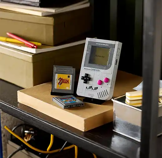 - Cartouches de jeux vidéo en briques - Inclut des cartouches Game Boy de The Legend of Zelda: Link's Awakening et Super Mario Land (à titre décoratif uniquement - ne permettent pas de jouer aux jeux Game Boy)