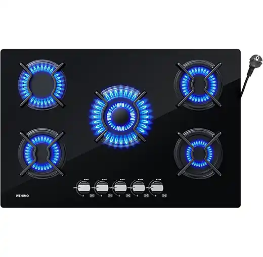 La WEHIMO Plaque Gaz 5 Feux est conçue pour être encastrable, ce qui assure une intégration parfaite dans le plan de travail de la cuisine. Les dimensions standardisées facilitent généralement son installation dans la plupart des niches prévues à cet effet. Cependant, il est toujours recommandé de vérifier scrupuleusement les dimensions de découpe nécessaires avant l’achat pour s’assurer d’une compatibilité parfaite avec votre mobilier de cuisine.